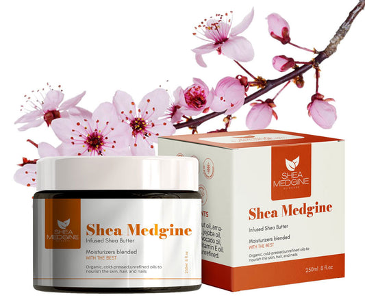 Nourish, Heal, and Rejuvenate your skin with Shea Medgine's chemical-free organic whipped body butter. Made with the finest oils, it's your perfect skincare companion- now available at 20% off! Treat your skin to the best!